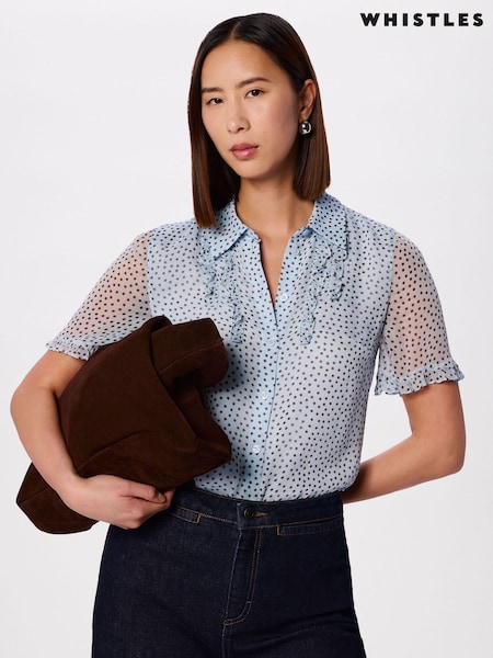 Whistles Blue Polka Dot Sheer Sleeve Shirt