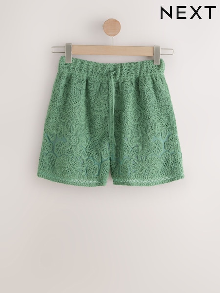 Green Crochet Tie Waist Shorts