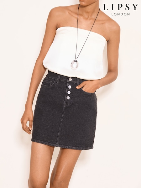 Lipsy Washed Black Button Fly Denim Mini Skirt