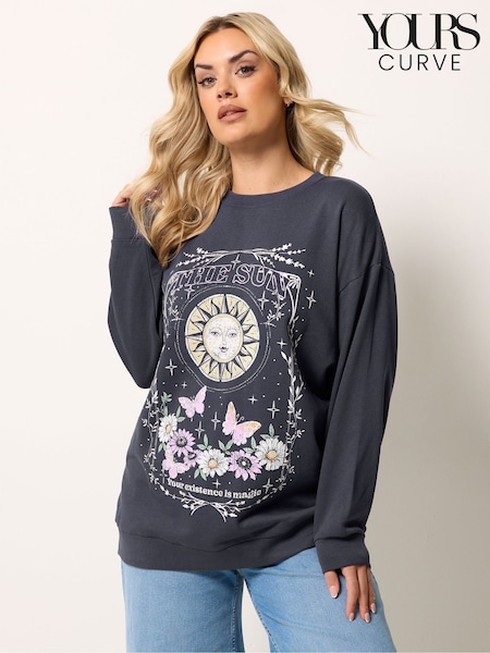 Yours Curve Grey Sun And Moon Print Sweatshirt