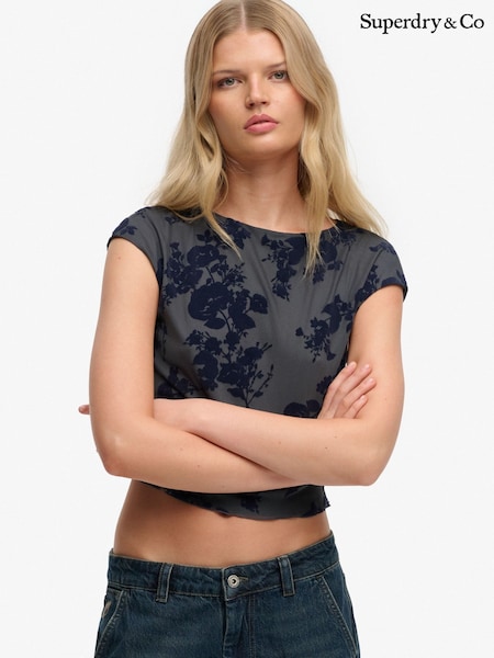Superdry Blue Flocked Mesh Short Sleeve Top