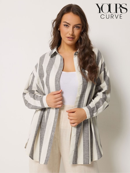 Yours Curve Brown Long Sleeve Linen Blend Shirt