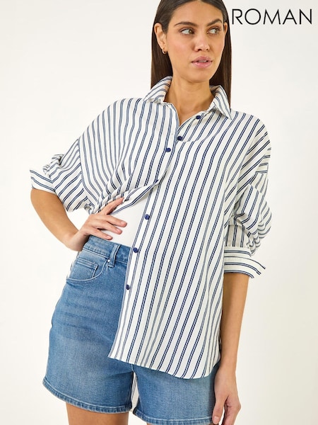 Weird Fish Blue Roscoe Striped Boyfriend Shirt