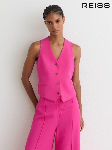 Reiss Pink Charli Button-Through Tailored Waistcoat with Linen