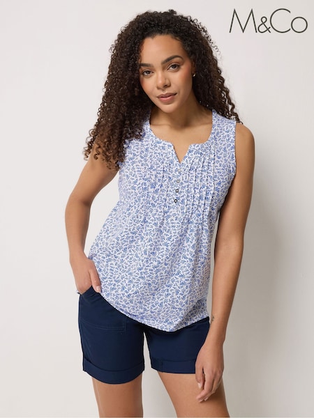 M&Co White Cotton Sleeveless Henley Top