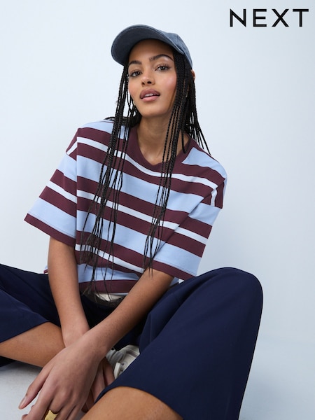 Blue/Brown Stripe Oversized Boxy Fit Heavyweight Crew Neck T-Shirt