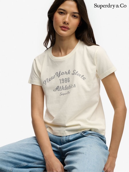 Superdry Cream Varsity Stripe Script T-Shirt