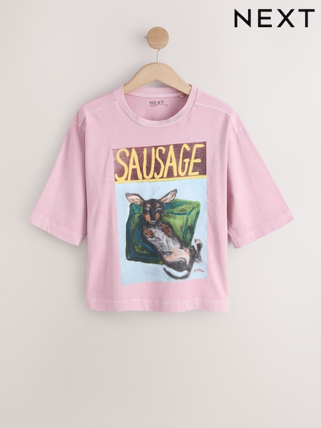 Pink Graphic Sausage Dog Frankie Thorp Licence T-Shirt