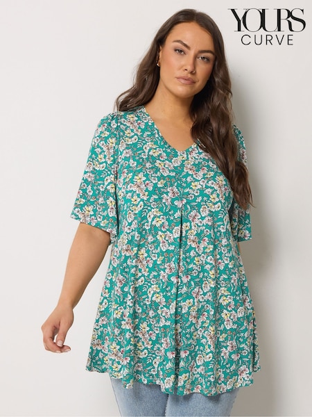 Yours Curve Peacook Green Pleated Front Tunic