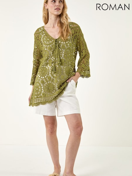 Yumi Green Double 100% Cotton Tunic With Frill Sleeves