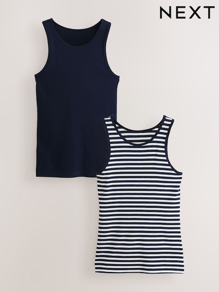 Navy Cotton Rib High Neck Vests 2 Pack
