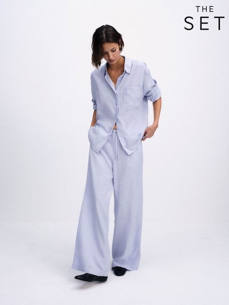 The Set 2 Pack Pull On Wide Leg Trousers With Linen Light Blue/Cream Stripe