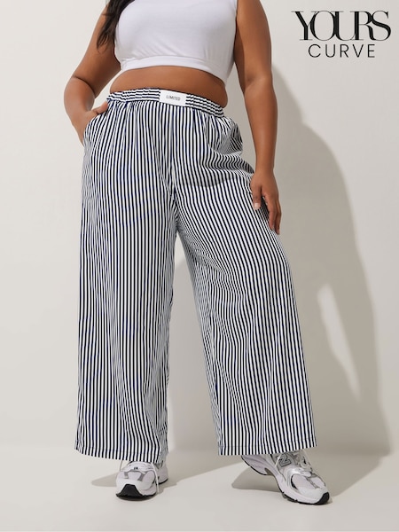 Yours Curve Blue Limited Stripe Boxer Waist Trousers
