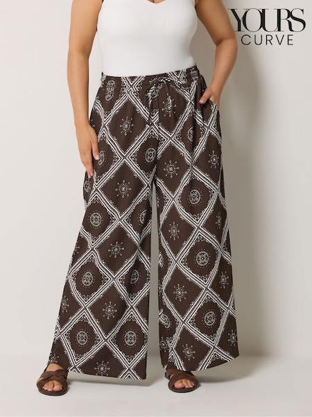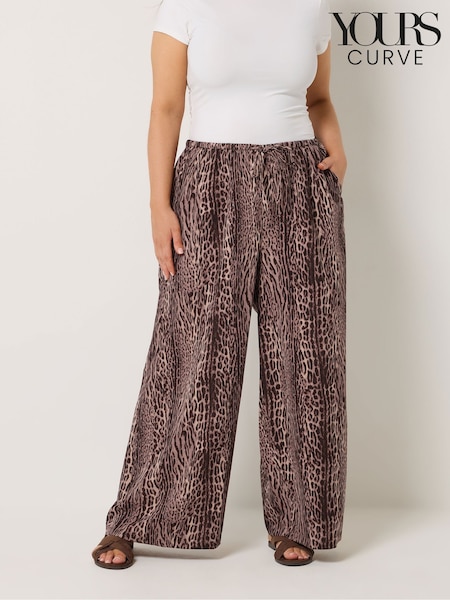 Yours Curve Brown Crinkle Wide Leg Leopard Print Trousers