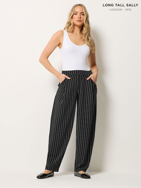 Long Tall Sally Black Pinstripe Barrel Leg Trousers