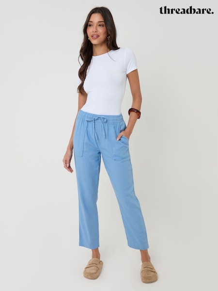 Threadbare Blue Regular Fit Linen Blend Tapered Trousers