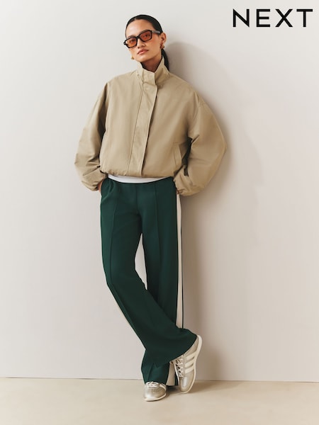 Green Side Stripe Wide Leg Tailored Trousers