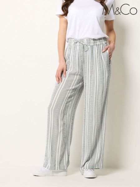 M&Co Grey Stripe Wide Leg Trousers