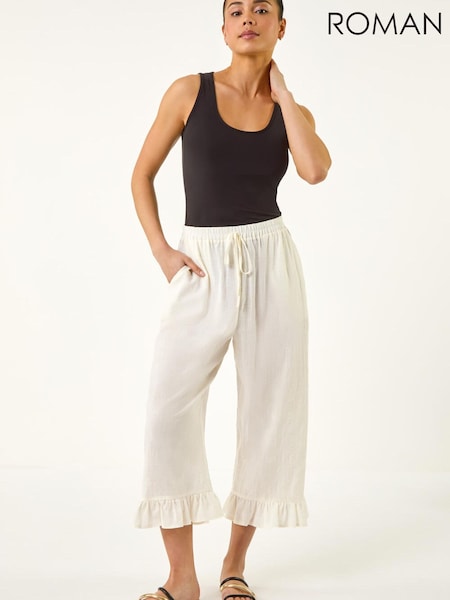 Roman White Petite Frill Hem Trousers