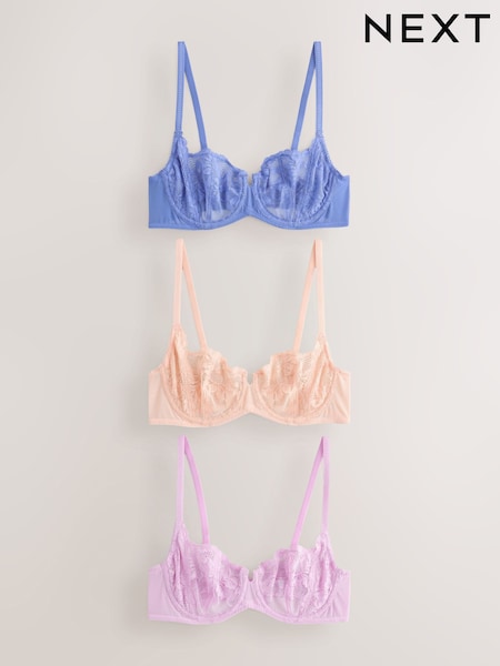 Mauve/Peach/Blue Non Pad Balcony Lace Bras 3 Pack