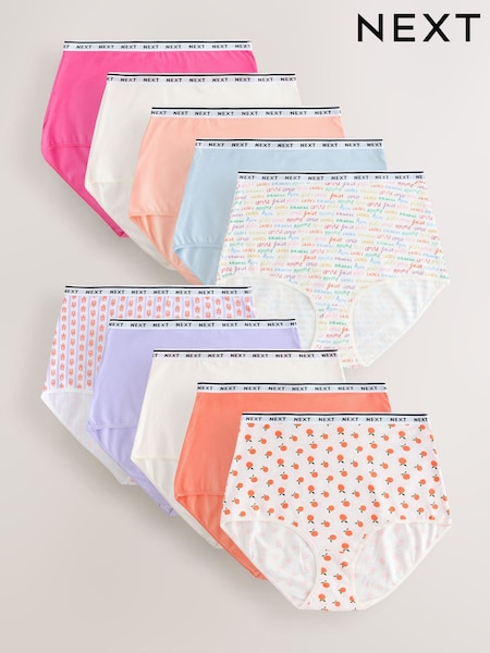 Lobster Print Full Brief Cotton Logo Knickers 10 Pack
