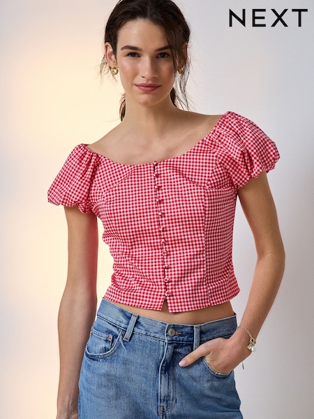 Red/White Gingham Milkmaid Puff Sleeve Top