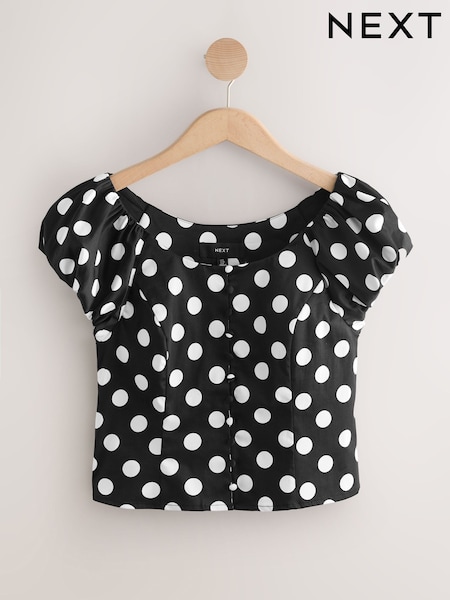 Black/White Polka Dot Milkmaid Puff Sleeve Top