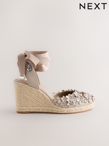 Blush Pink Forever Comfort® Leather Closed Toe Flower Wedge