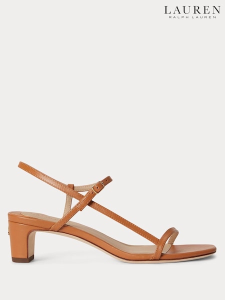 Lauren Ralph Lauren Brown Lainee Mid-Heel Nappa Leather Sandals