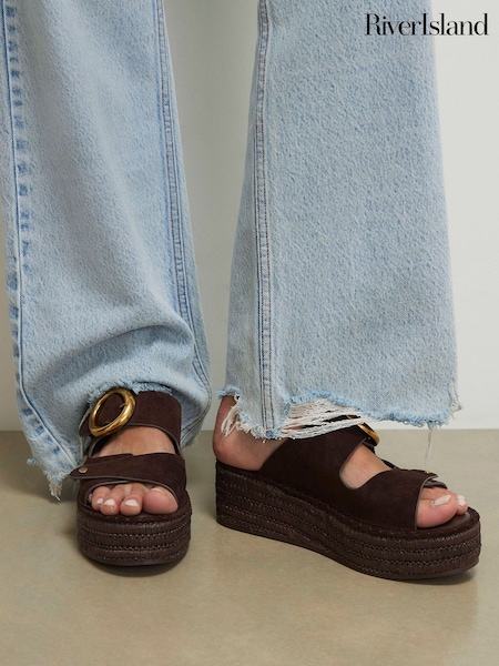 River Island Brown Faux Suede Two Part Ring Buckle Flatform Sandals