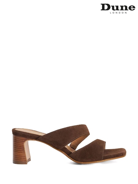 Dune London Dark Brown Jaeda Block Heeled Suede Sandals