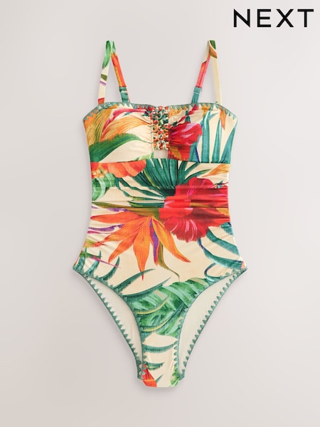 B by Ted Baker Beaded Tummy Control Bandeau White Floral Swimsuit